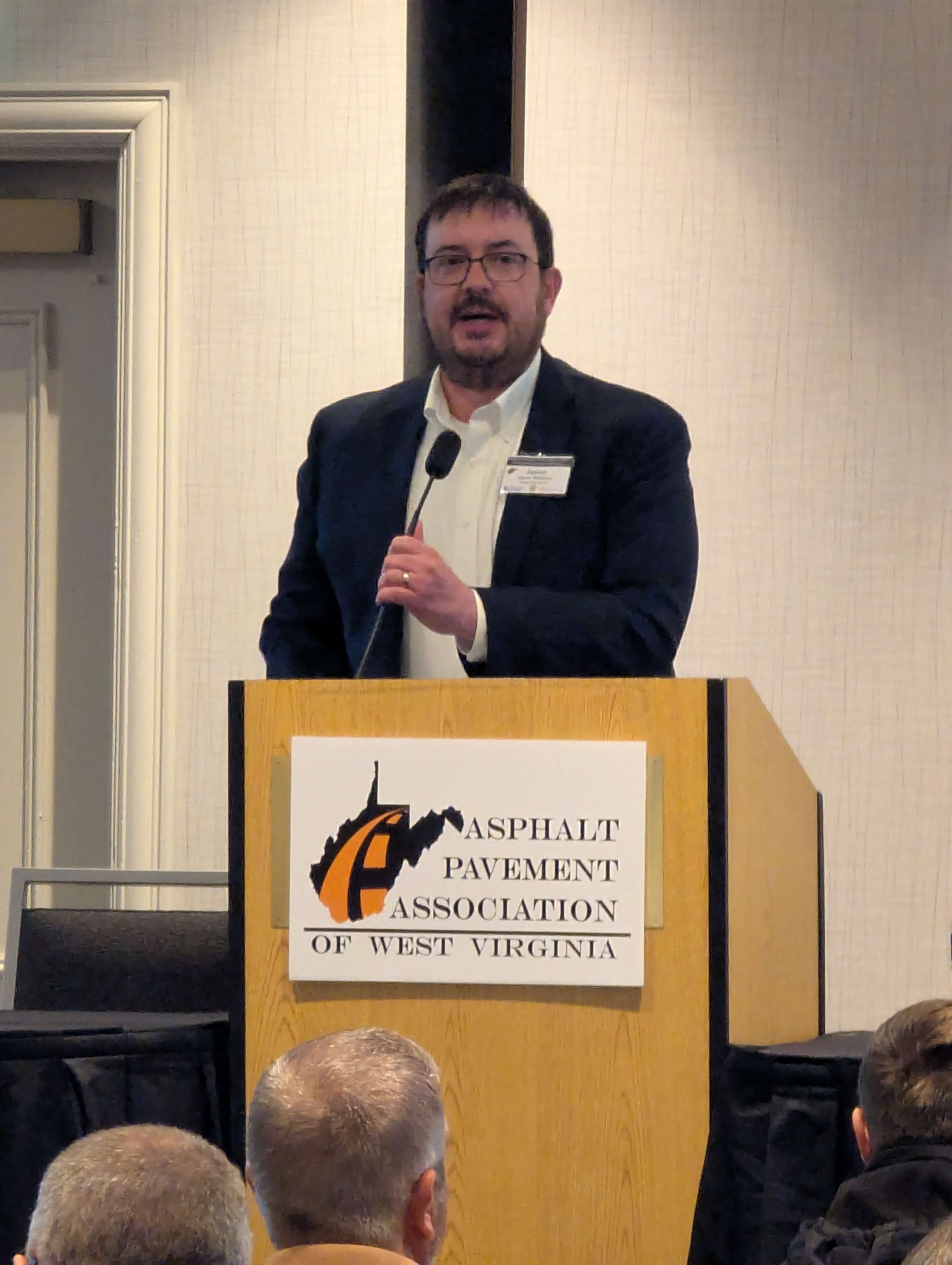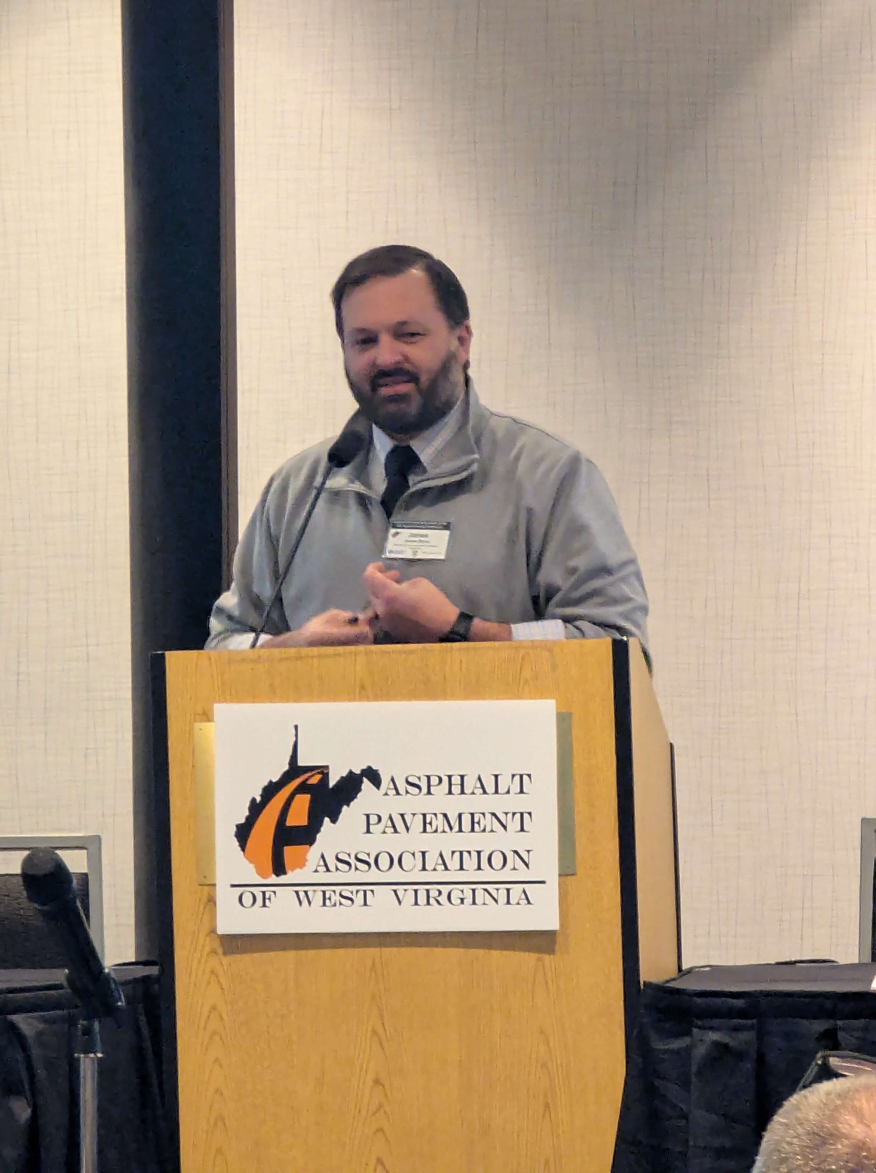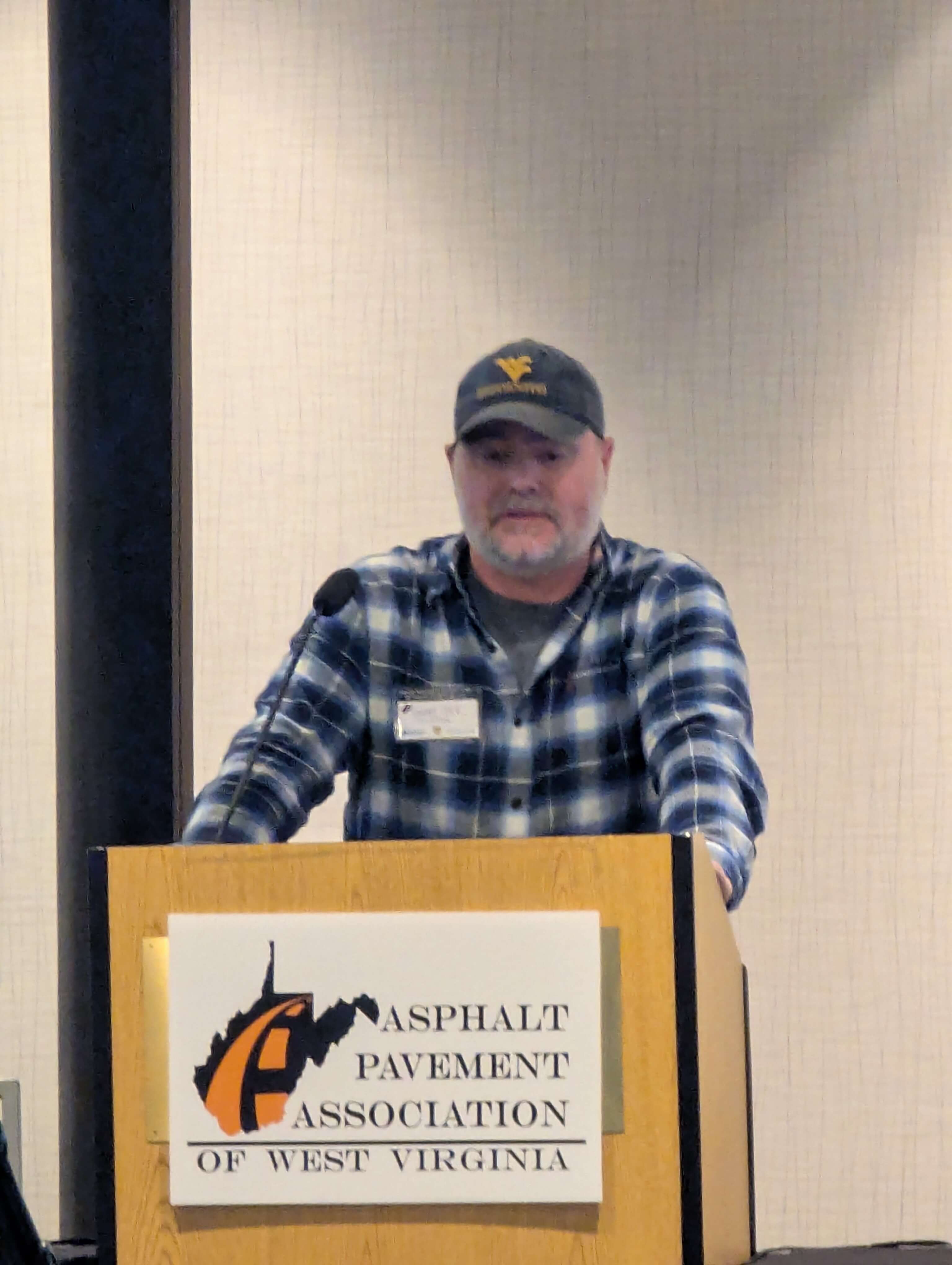 Rumbaugh also mentioned highlighting some changes to the construction program and their impact on the asphalt and construction industry. He first mentioned that decisions will be pushed back down to lower level DOH staffers, in hopes to expedite projects. For instance, regional and district level construction engineers will be tasked with approving change orders which fall in certain limits. He also discussed WVDOH’s continued implementation of AASHTOware Project(AWP), the use of AWP for Purchase order projects the possibility of moving to a 5 year recertification for technicians, E-ticketing or additional products, changes to friction testing on new pavements and bridges, removal of Bond Strength penalty structures, requiring joint sealing on all 401 projects.