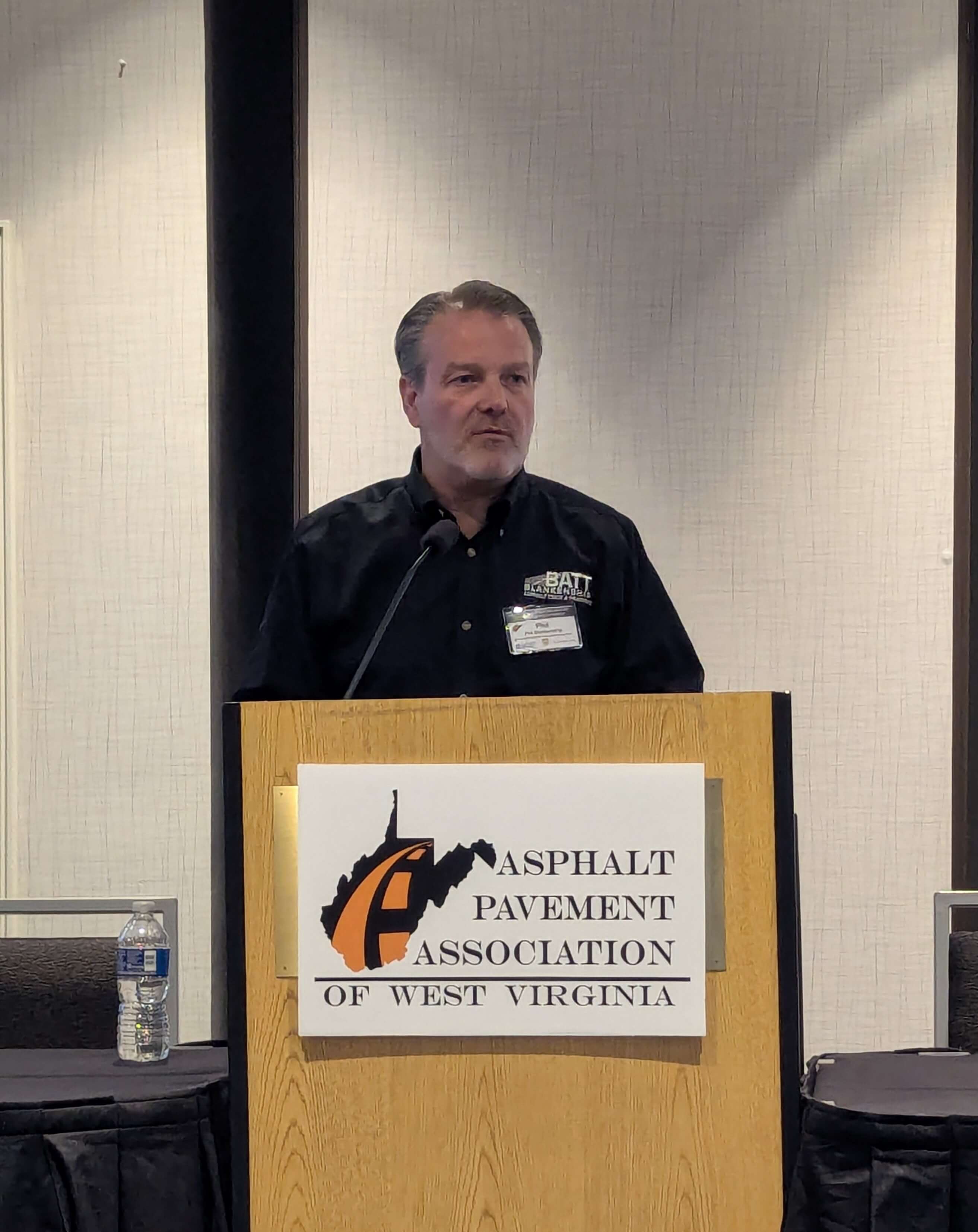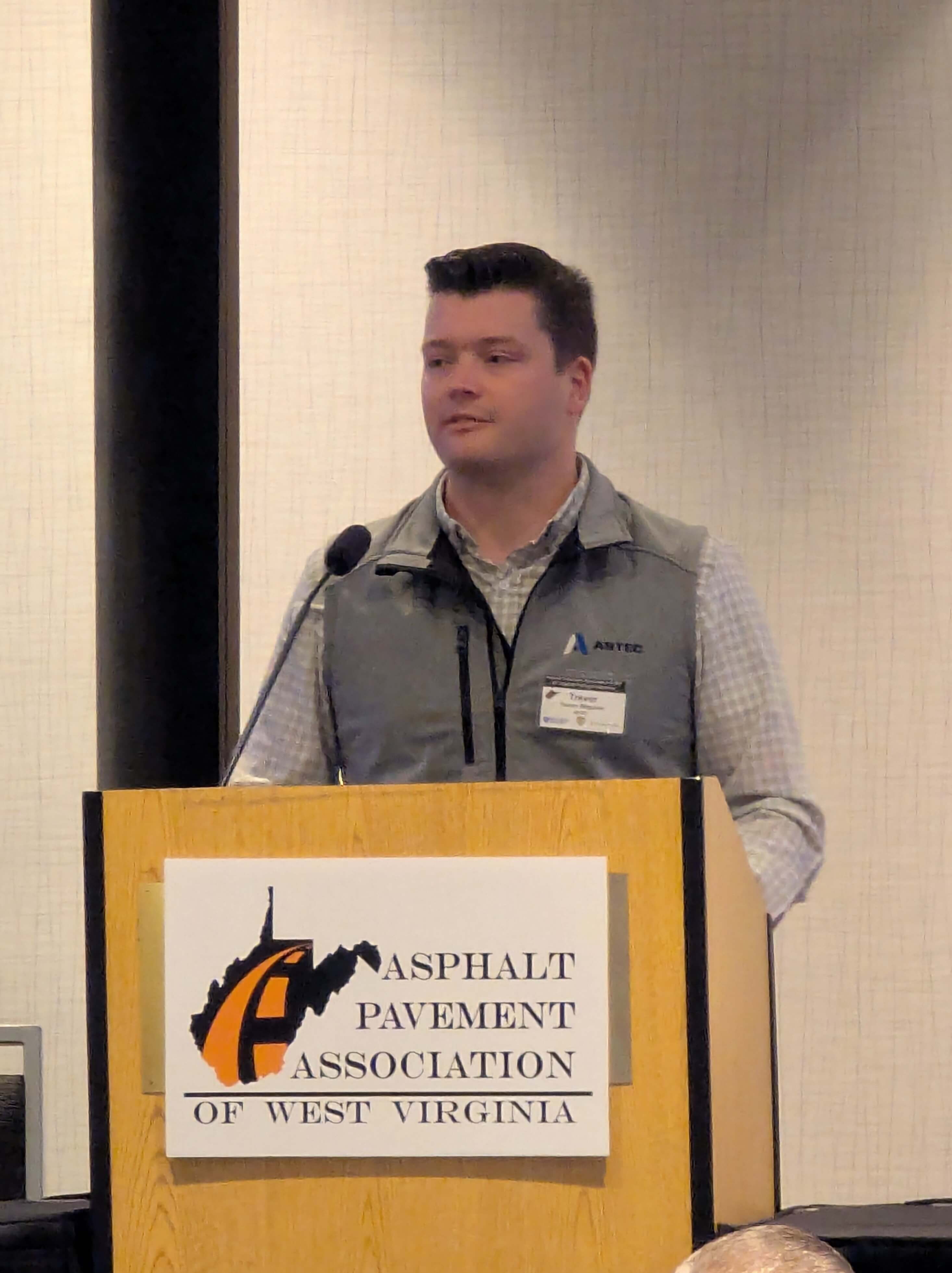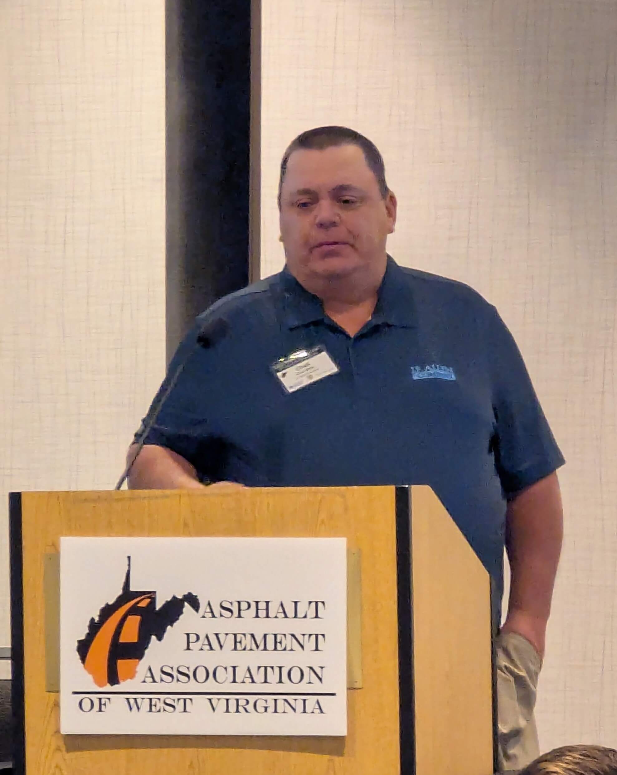 Following the Preconstruction Meeting, the Asphalt Paving Conference commenced with APAWV Chairman Chet Rodabaugh, WV Paving Inc. offering opening remarks. The session continued with presentations from ASTEC’s Director of Sustainability, Trevor Wagoner; J.F. Allen Company’s Quarry Operations Manager, Chad Miller; and Asphalt Institute’s Regional Engineer Jason Wielinski. Wagoner, presented on asphalt production with high RAP contents, overviewing advances in asphalt plants to handle 65%+ RAP contents. Wagoner also covered the importance of fractionation, and other consistency controlling techniques necessary to achieve a quality product at higher RAP contents.